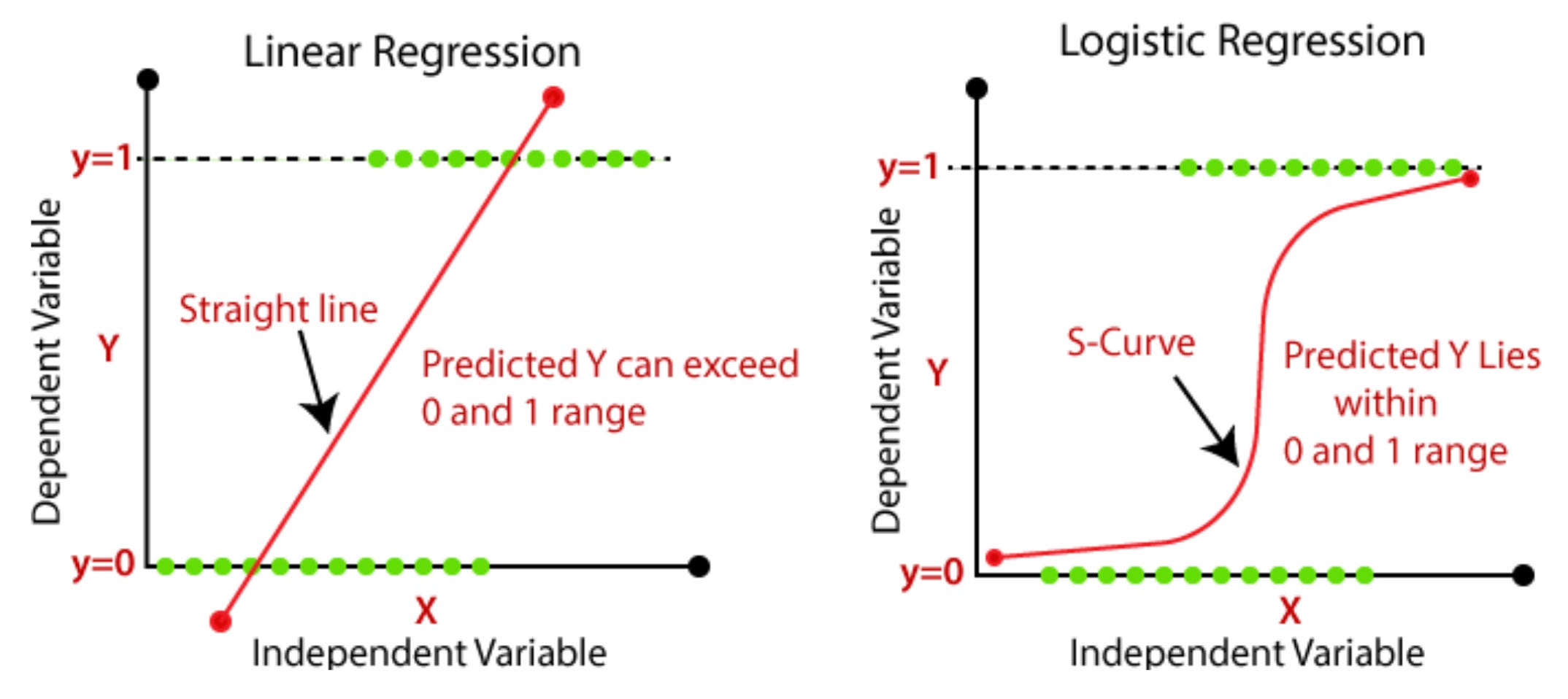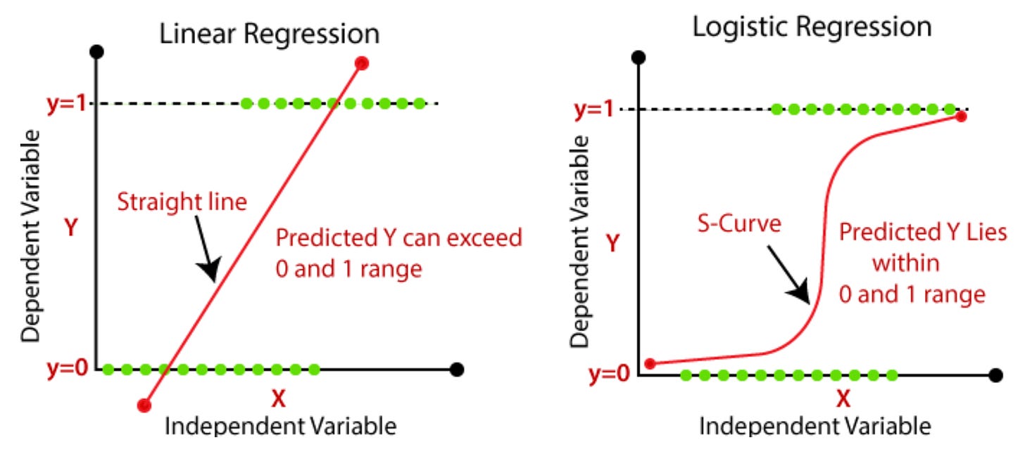 Logistic Regression — like linear regression but a sigmoid curve is used to produce an output between 0 and 1, which can be converted to a binary output by rounding up or down